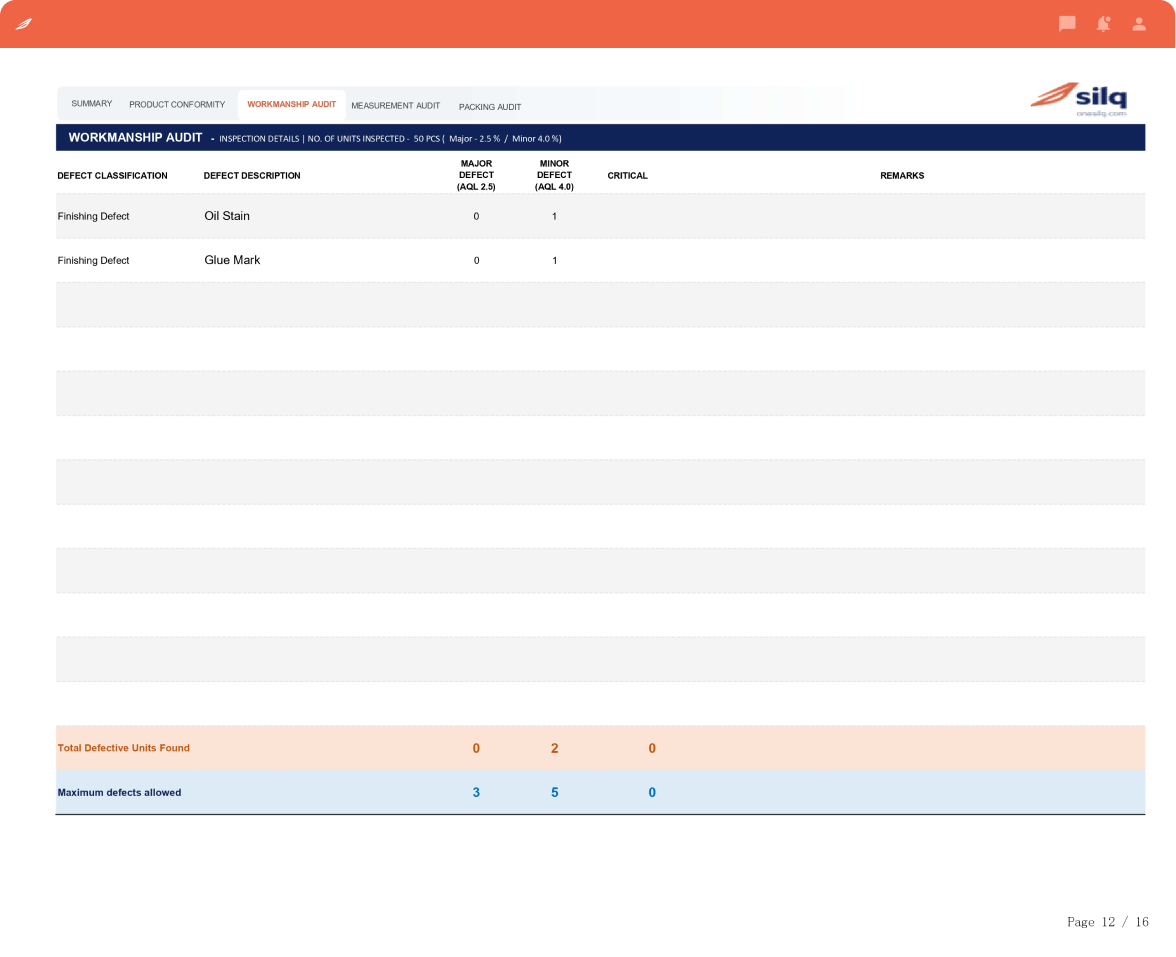 Real-time, digital reports with AQL results, defect classification (critical, major, minor), and high-resolution images enabling faster decision-making across sourcing, procurement, and quality teams.