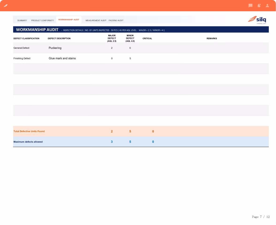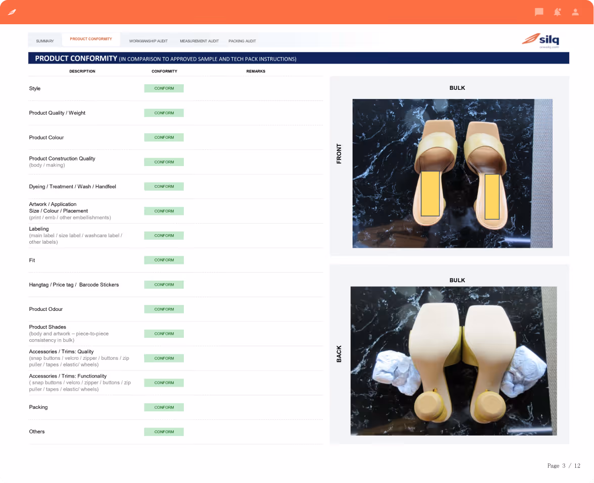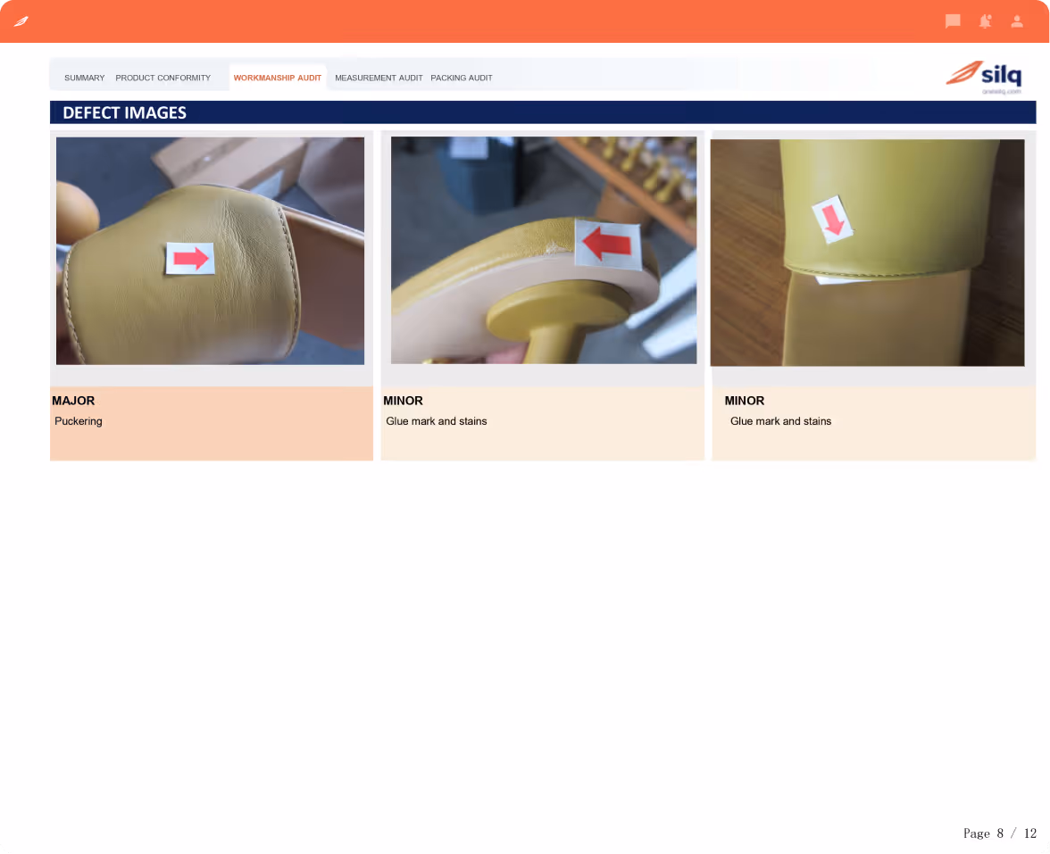 Detailed reports with AQL results, defect classification (critical, major, minor), and high-resolution visuals enabling faster decisions across sourcing and supply chain teams.